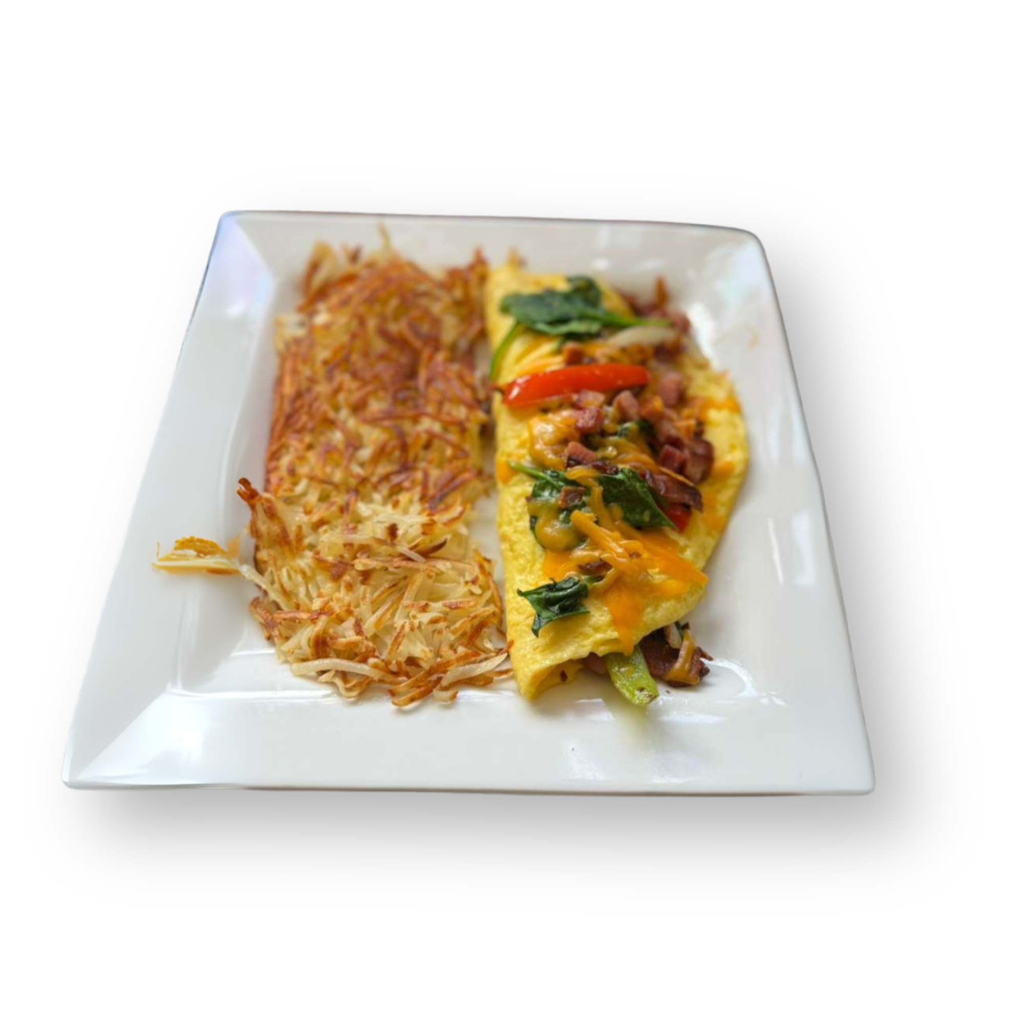 Fluffy omelets filled with fresh ingredients, served with your choice of home-style potatoes, hash browns, fruit, and toast.